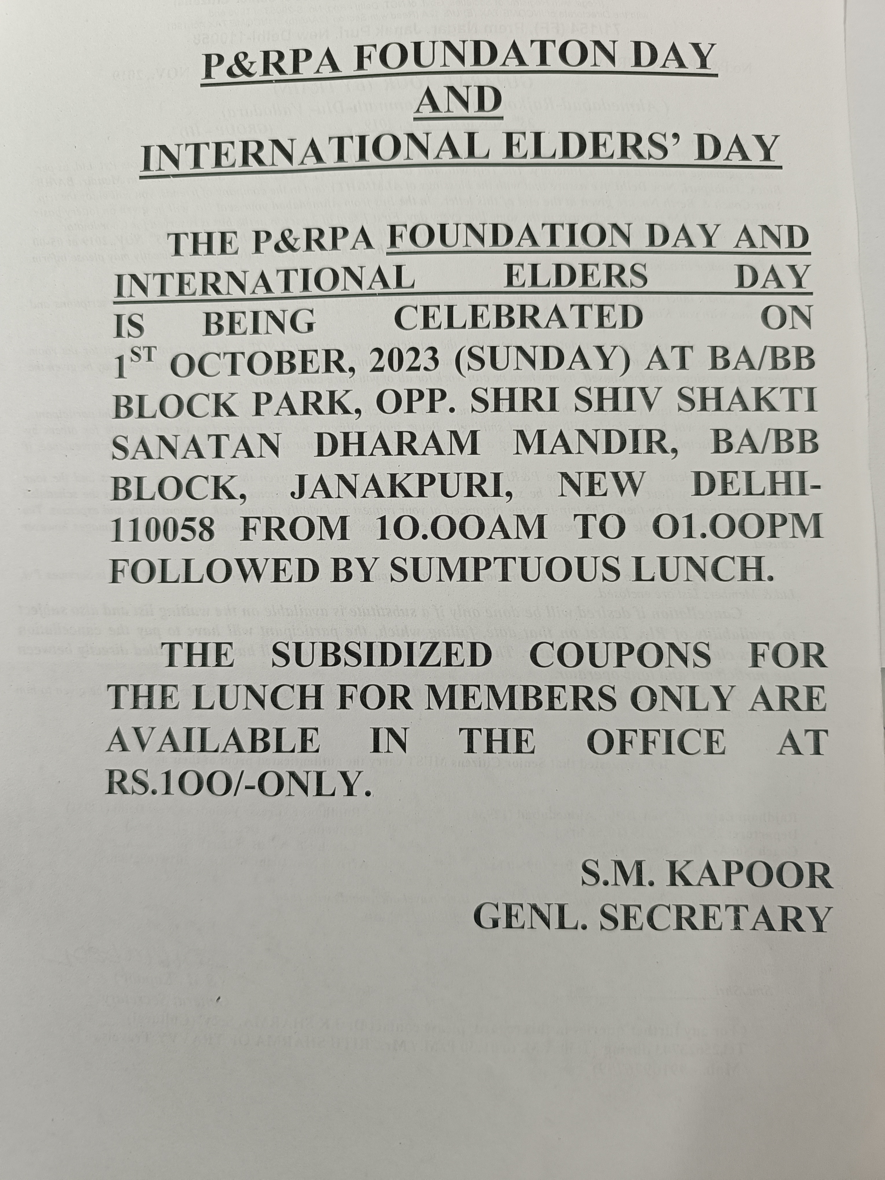 PRPA FOUNDATION DAY AND INTERNATIONAL ELDERS DAY